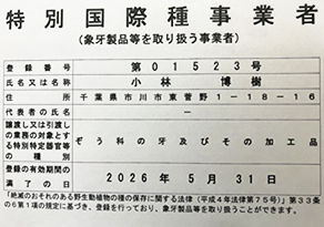 特別国際種事業者 第01523号
